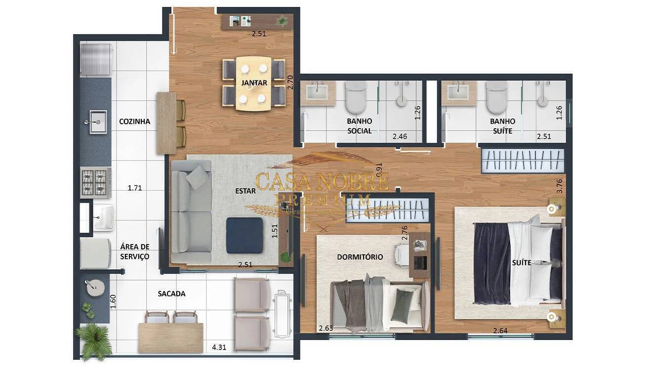 - Unidades de 2 dormitórios (1 suíte), com varanda gourmet, áreas entre 60 a 62 m², 2 banheiros e 1 vaga de garagem coberta